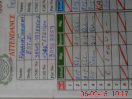 | CNIC | Full Name | Designation | R/C | Absence During Last Calender Month |