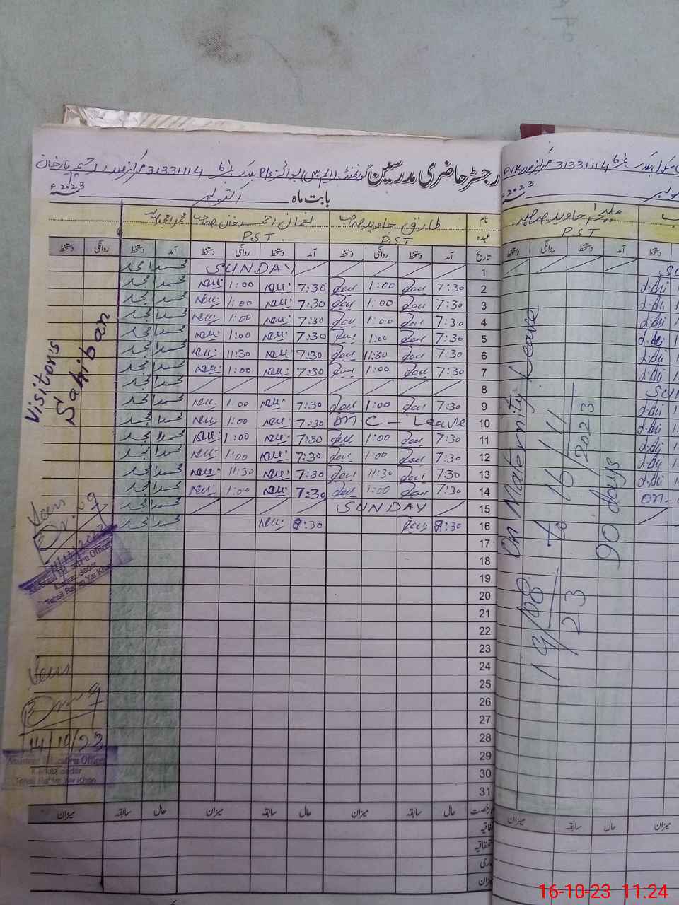 | Leave | Duty | Absent | Maternity | Medical | Ex- Pak |
