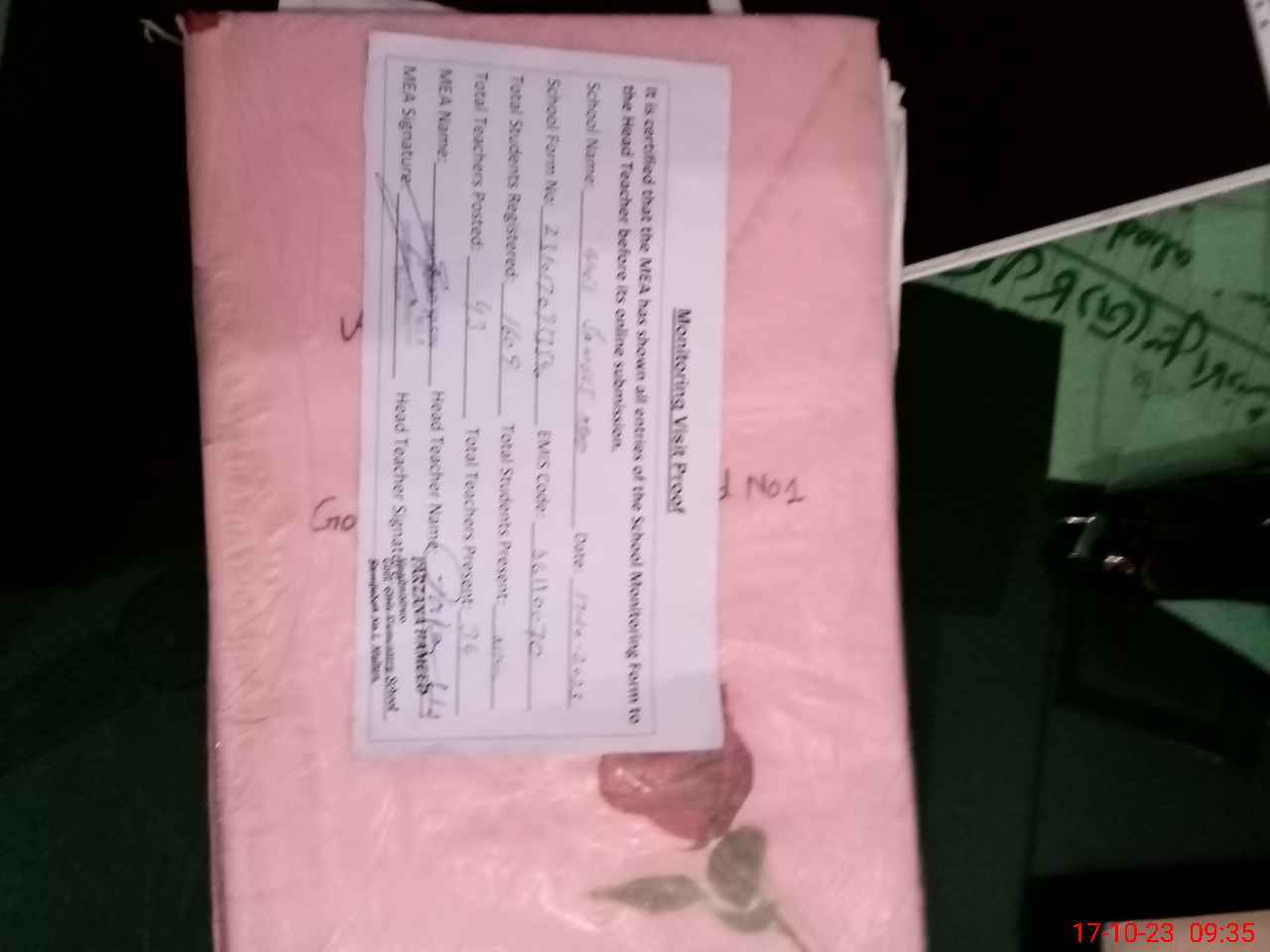 | Certified that this School was Inspected by the Undersigned MEA/DMO Today and the Information Stated Above is as Per Record. | |||||