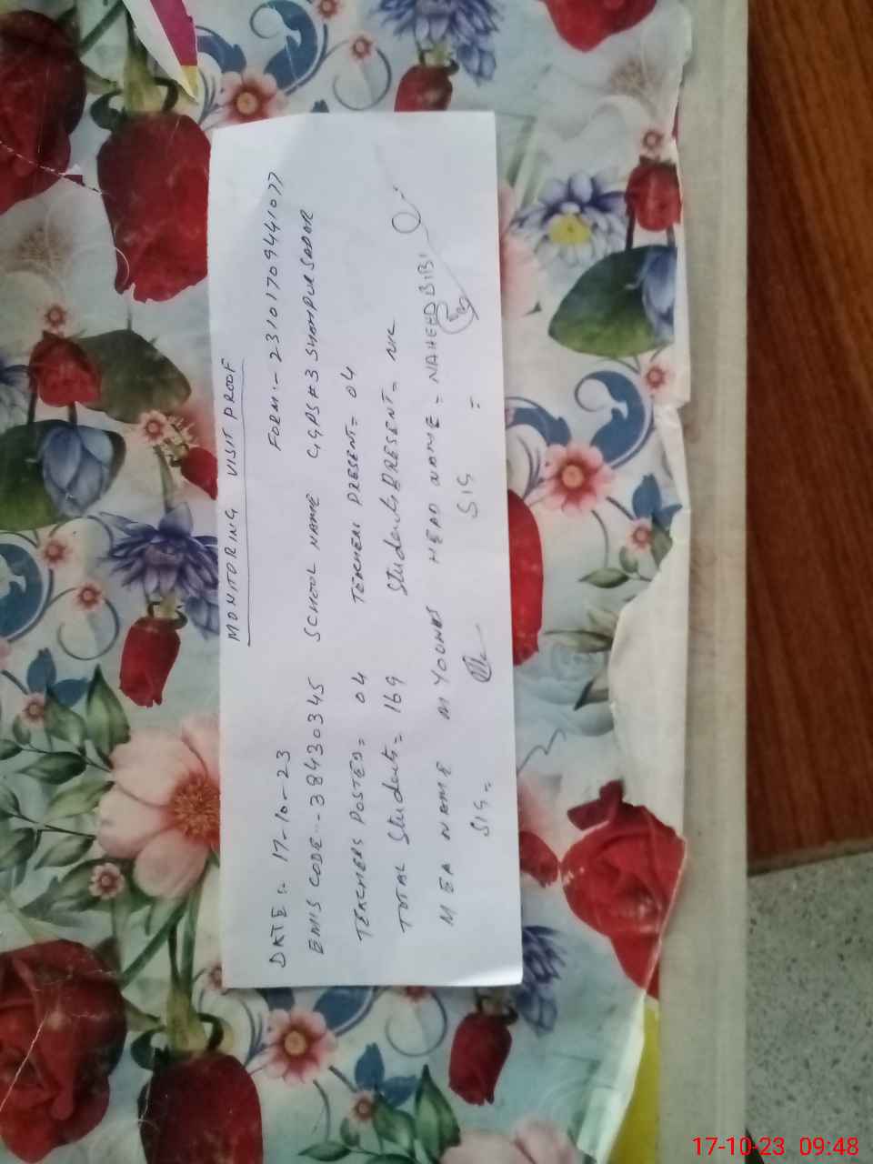 | Attendance Register | Head Teacher | MEA with School | Visit Proof |
