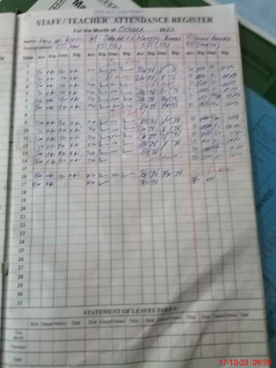 | Presence Of Teaching Staff | 17 | 17 | 0 |