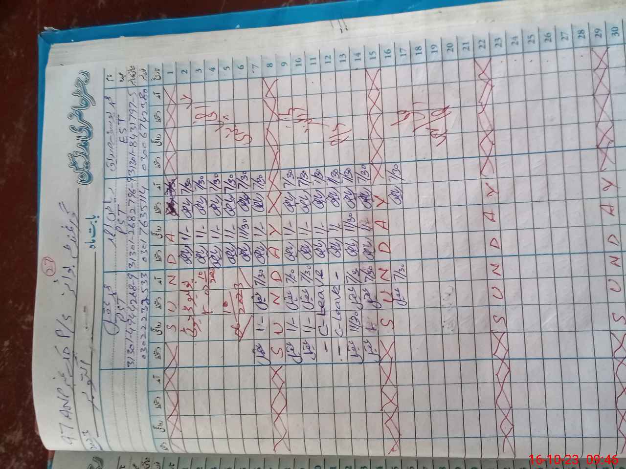 | CNIC | Full Name | Designation | R/C | Absence During Last Calender Month |