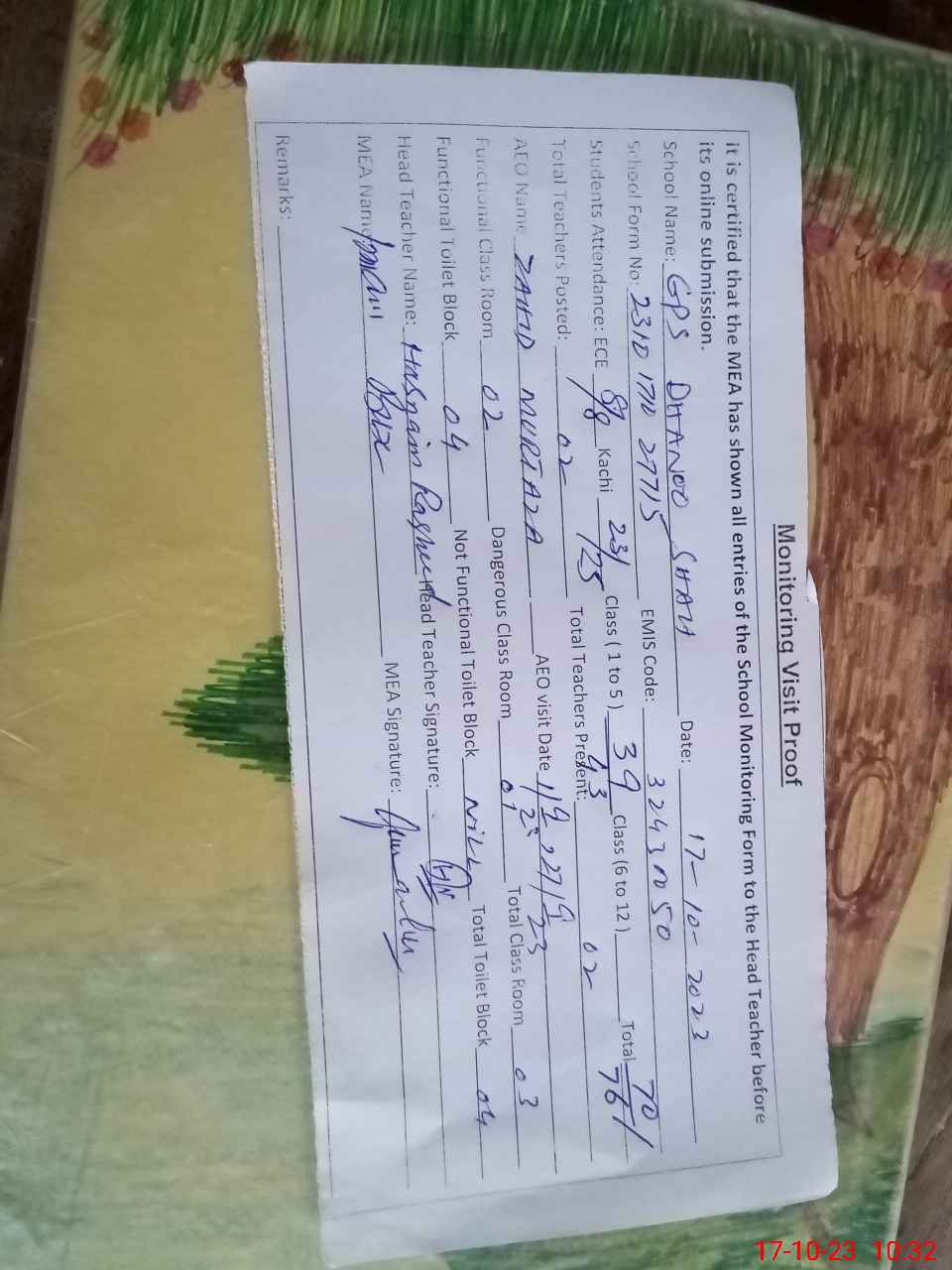 | EMIS Code: 32430050 | Name of School: GPS DHANNO SHAH | |||
