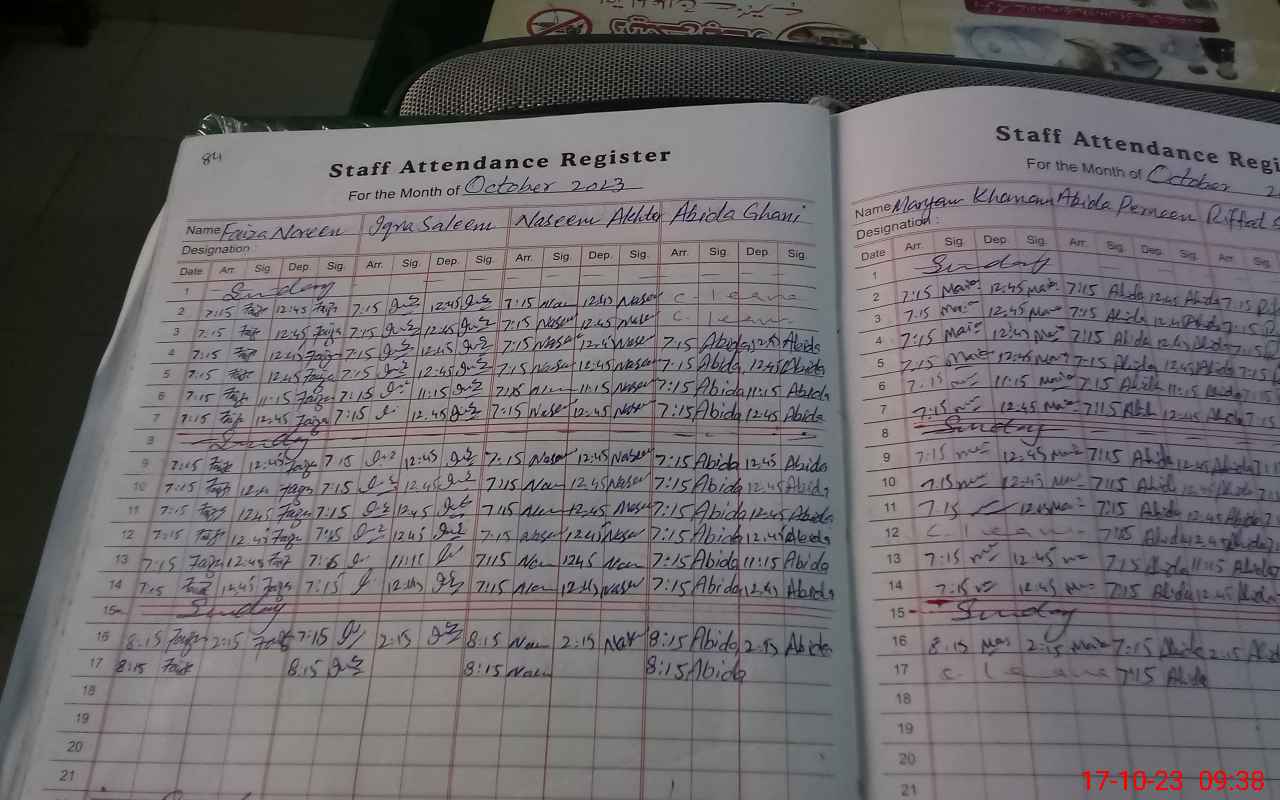| CNIC | Full Name | Designation | R/C | Absence During Last Calender Month |