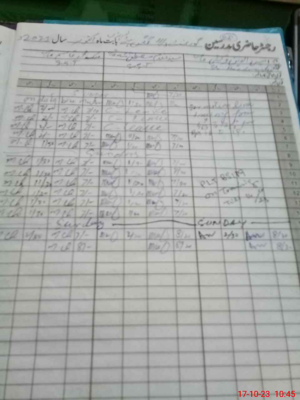| CNIC | Full Name | Designation | R/C | Absence During Last Calender Month |