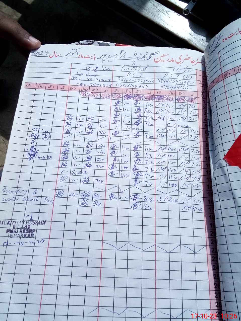 | Name: SA**** HU**** Designation: (School Headmaster's/Headmistress's) PST Phone/Cell Number: 03**** |