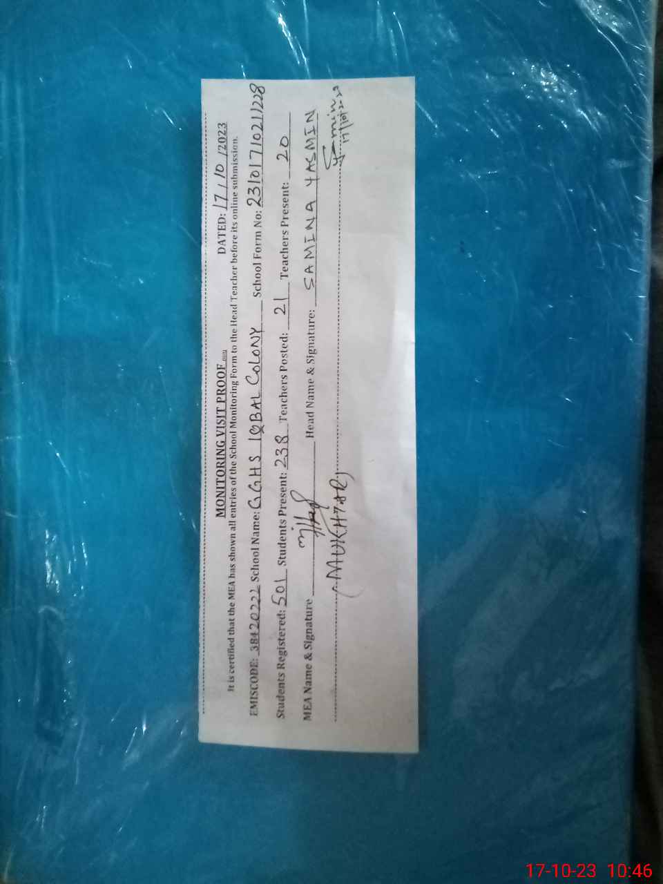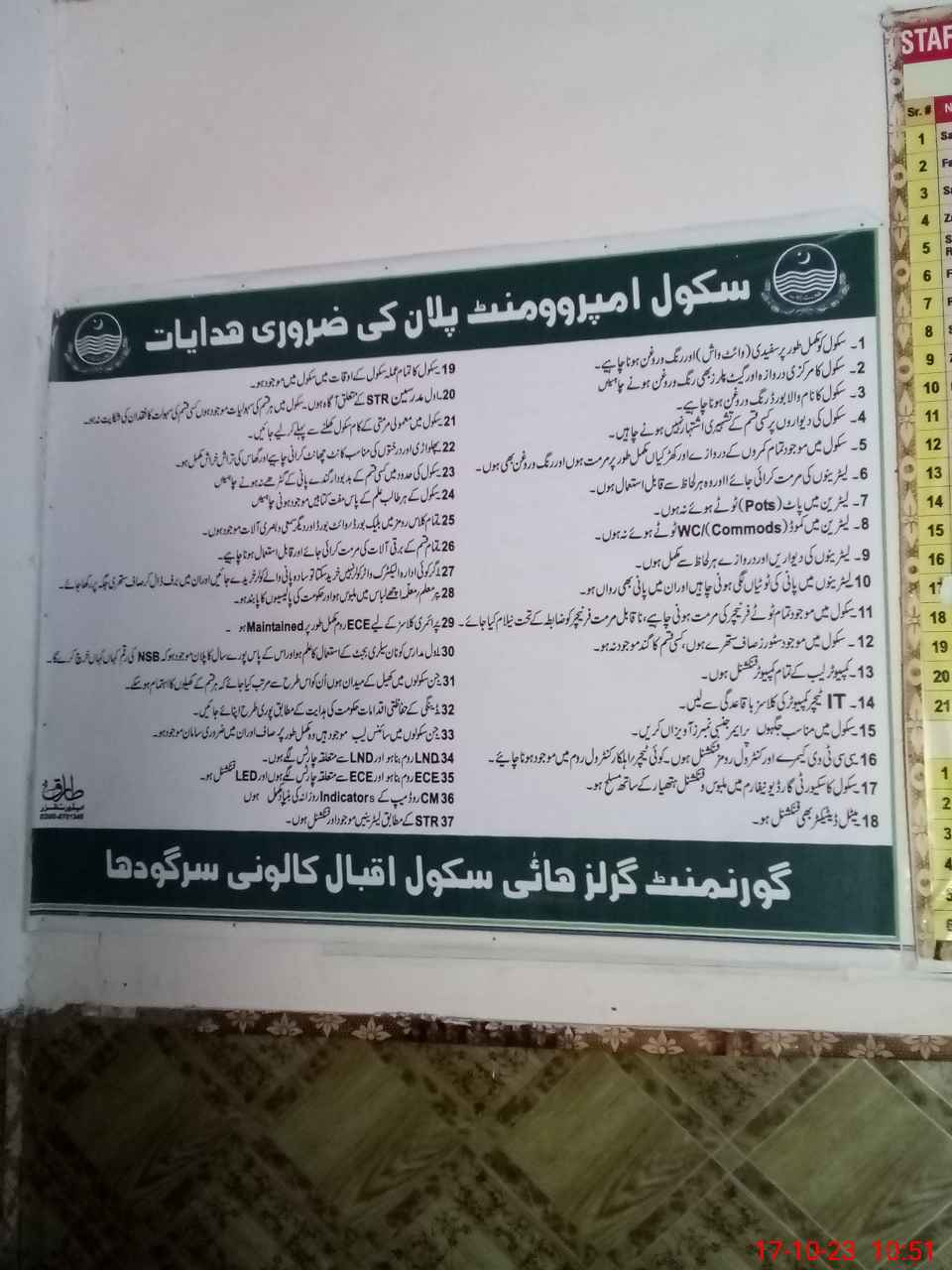 | EMIS Code: 38420222 | Name of School: GGHS IQBAL COLONY SARGODHA | |||