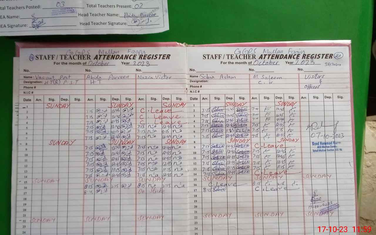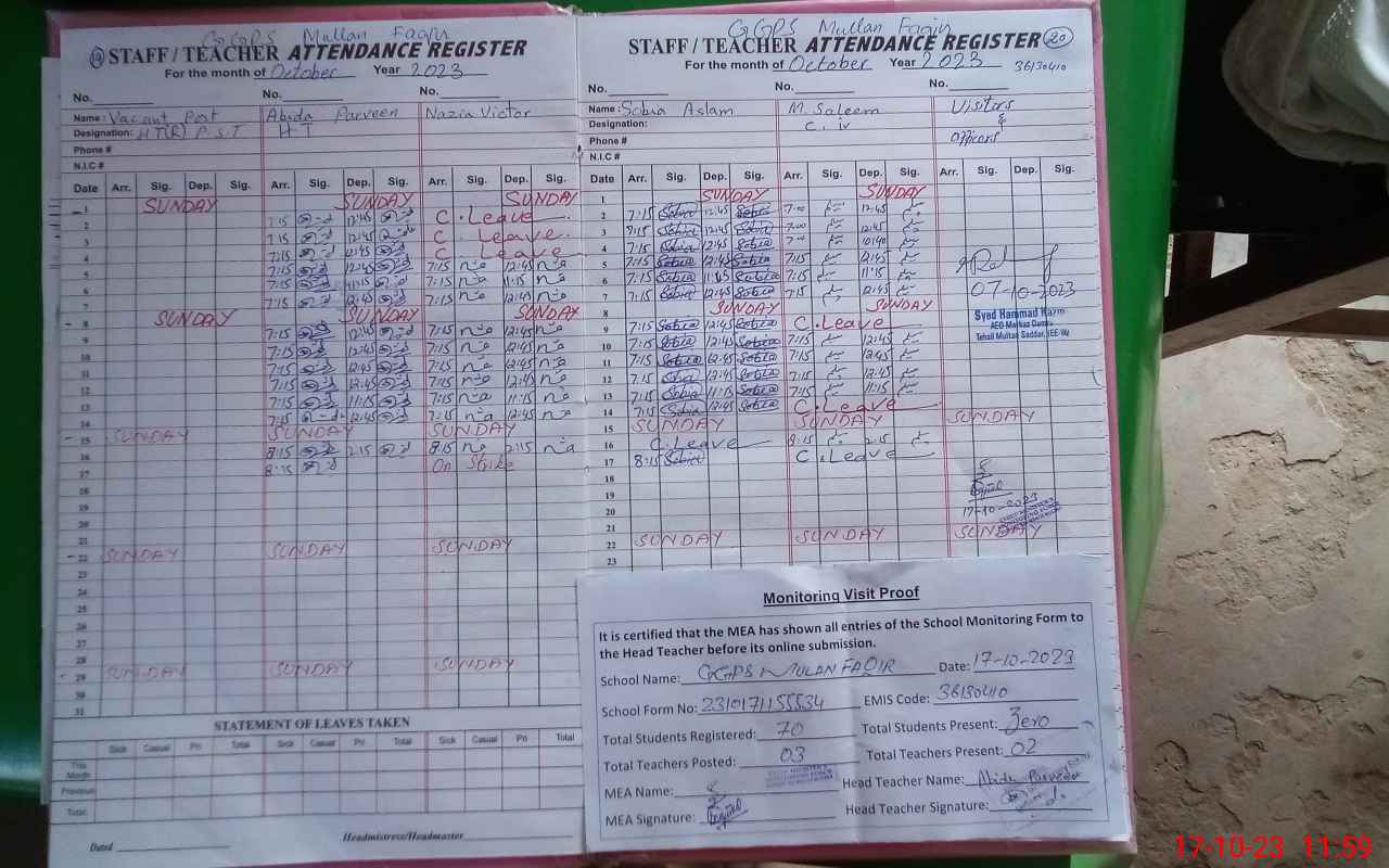 | EMIS Code: 36130410 | Name of School: GGPS MULAN FAQIR MULTAN | |||
