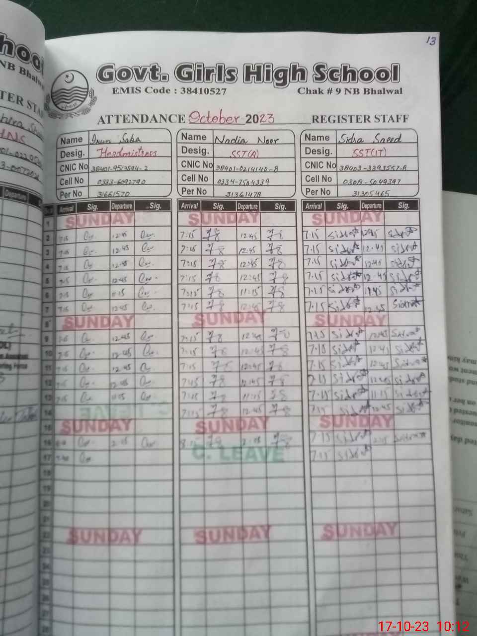 | Name: IR**** SA**** Designation: (School Headmaster's/Headmistress's) HM Phone/Cell Number: 03**** |
