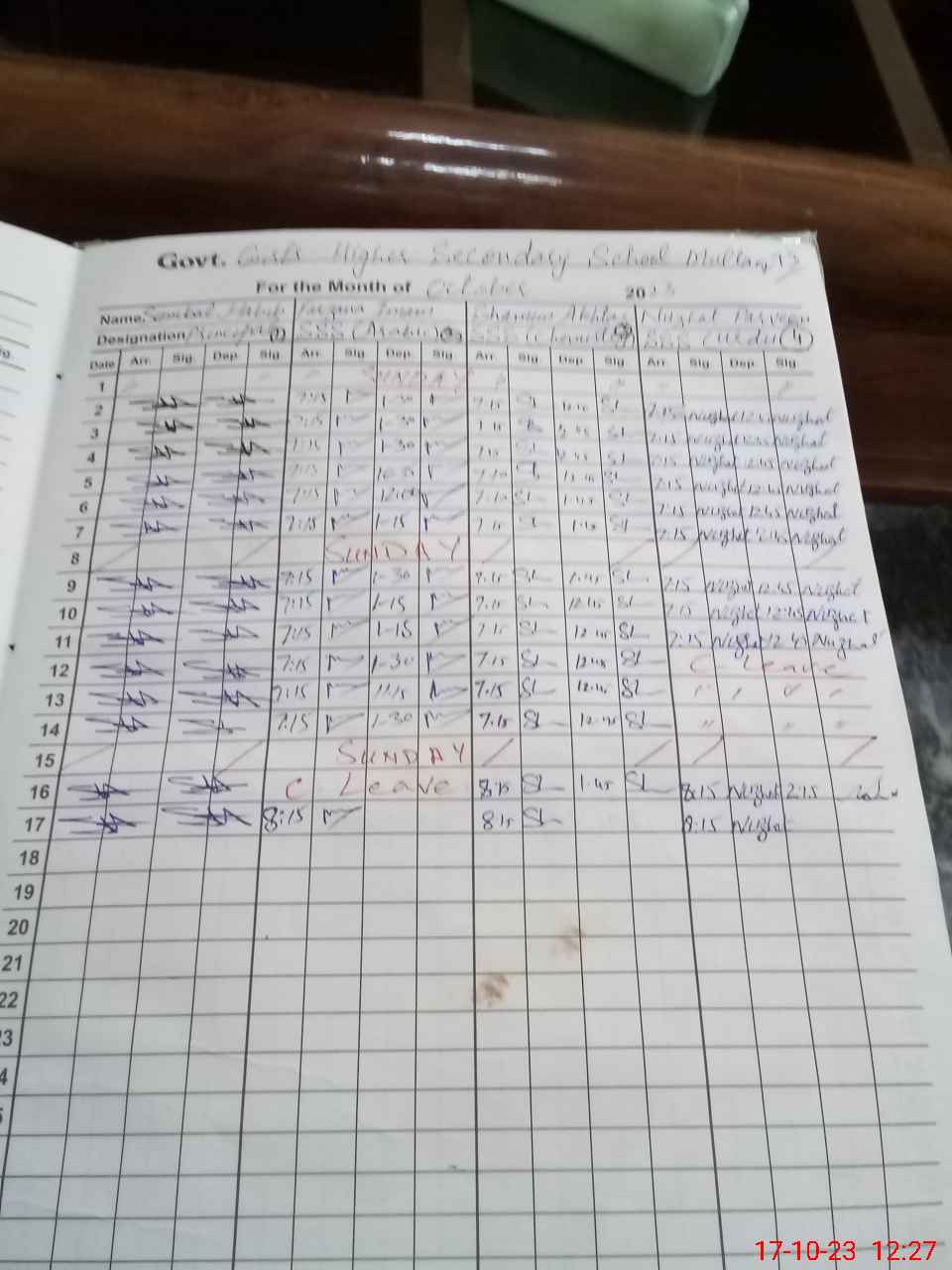 | Remarks (Use Separate Page if Required): Urooj iftikhar pst is on ex pak leave from Jan 2023 but no leave record provide | |||||