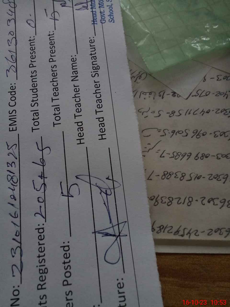 | Name: Ab**** Designation: (School Headmaster's/Headmistress's) PST/PTC/JV Phone/Cell Number: 03**** |