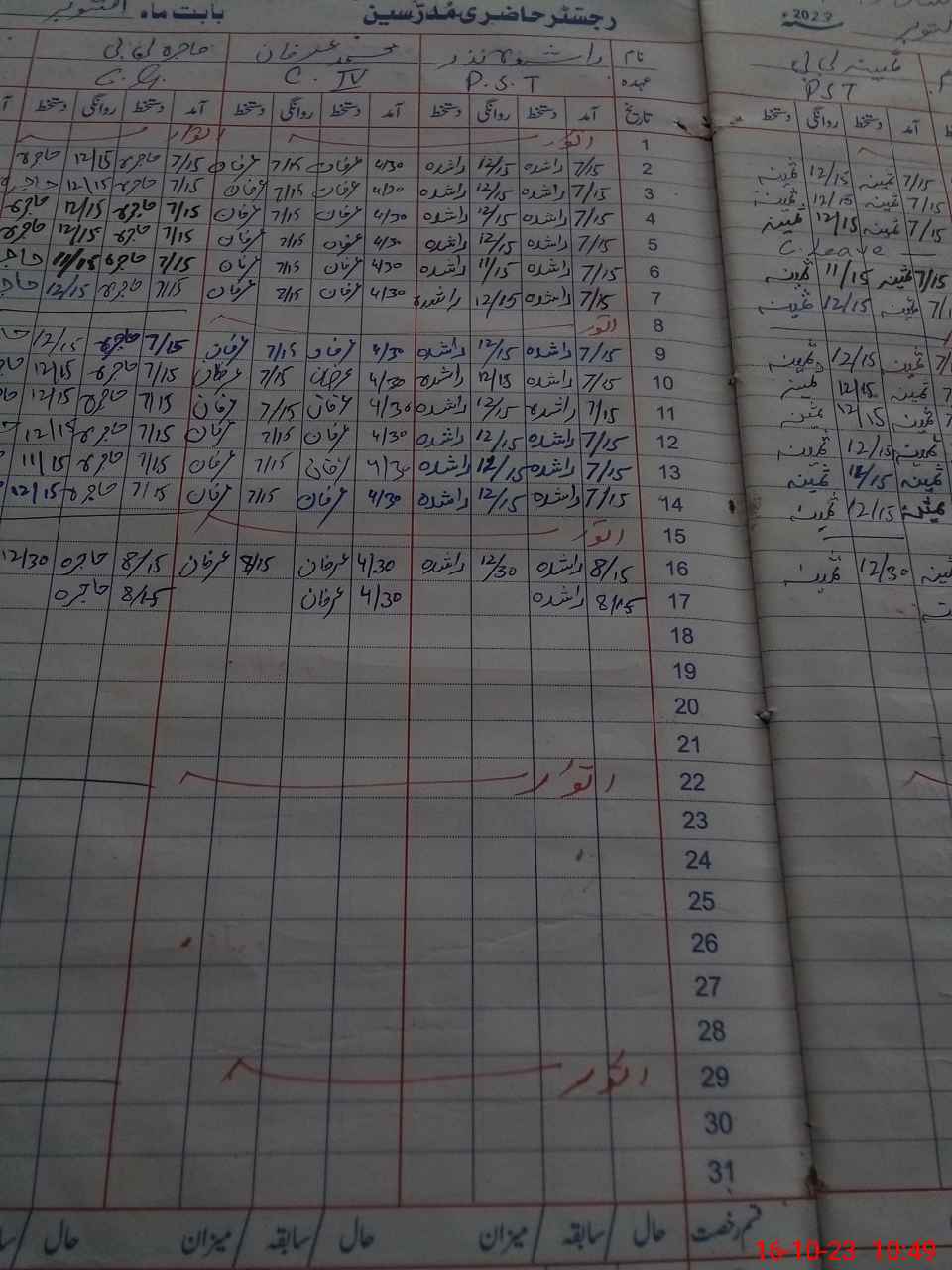 | CNIC | Full Name | Designation | R/C | Absence During Last Calender Month |