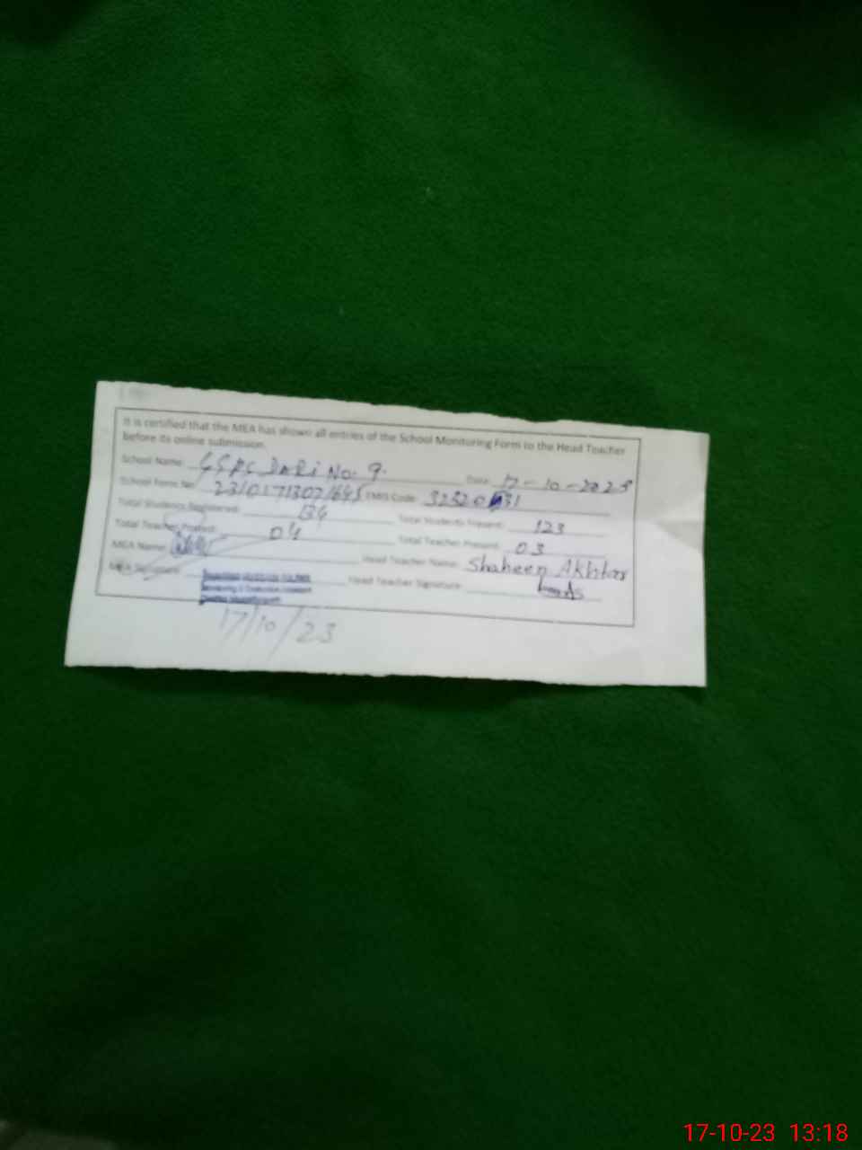 | EMIS Code: 32320531 | Name of School: GGPS DARI NO. 9 | |||