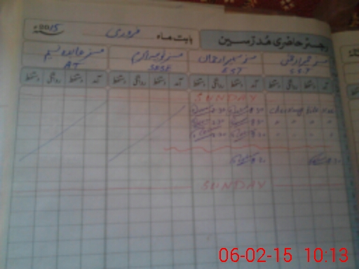 | CNIC | Full Name | Designation | R/C | Absence During Last Calender Month |