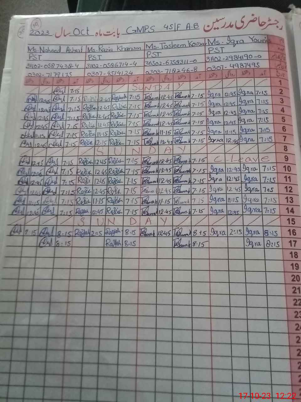 | Name: Fa**** Ha**** Designation: (School Headmaster's/Headmistress's) PST Phone/Cell Number: 03**** |