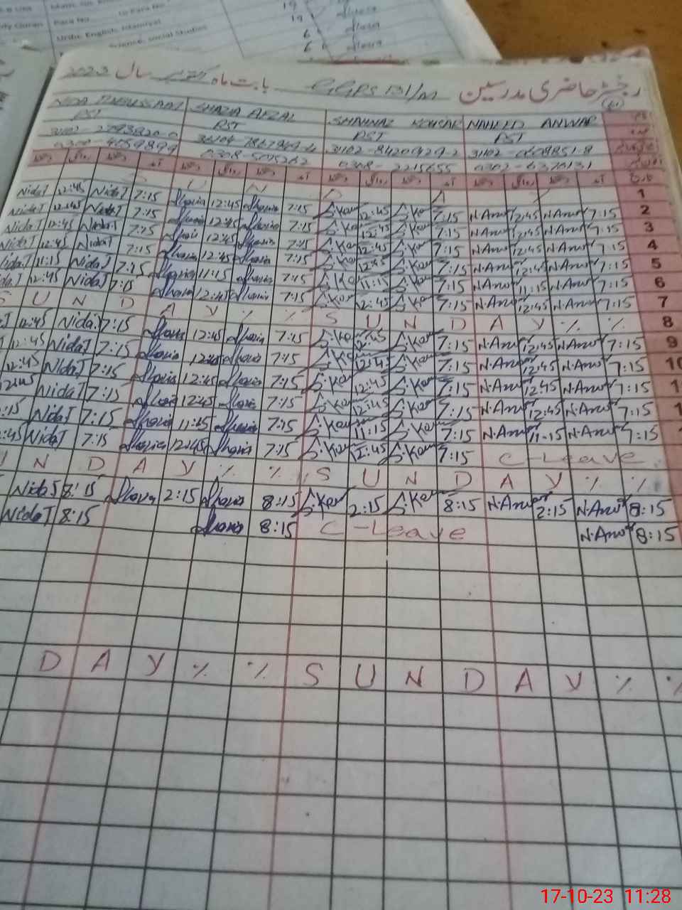 | Name: Sh**** Af**** Designation: (School Headmaster's/Headmistress's) PST Phone/Cell Number: 03**** |