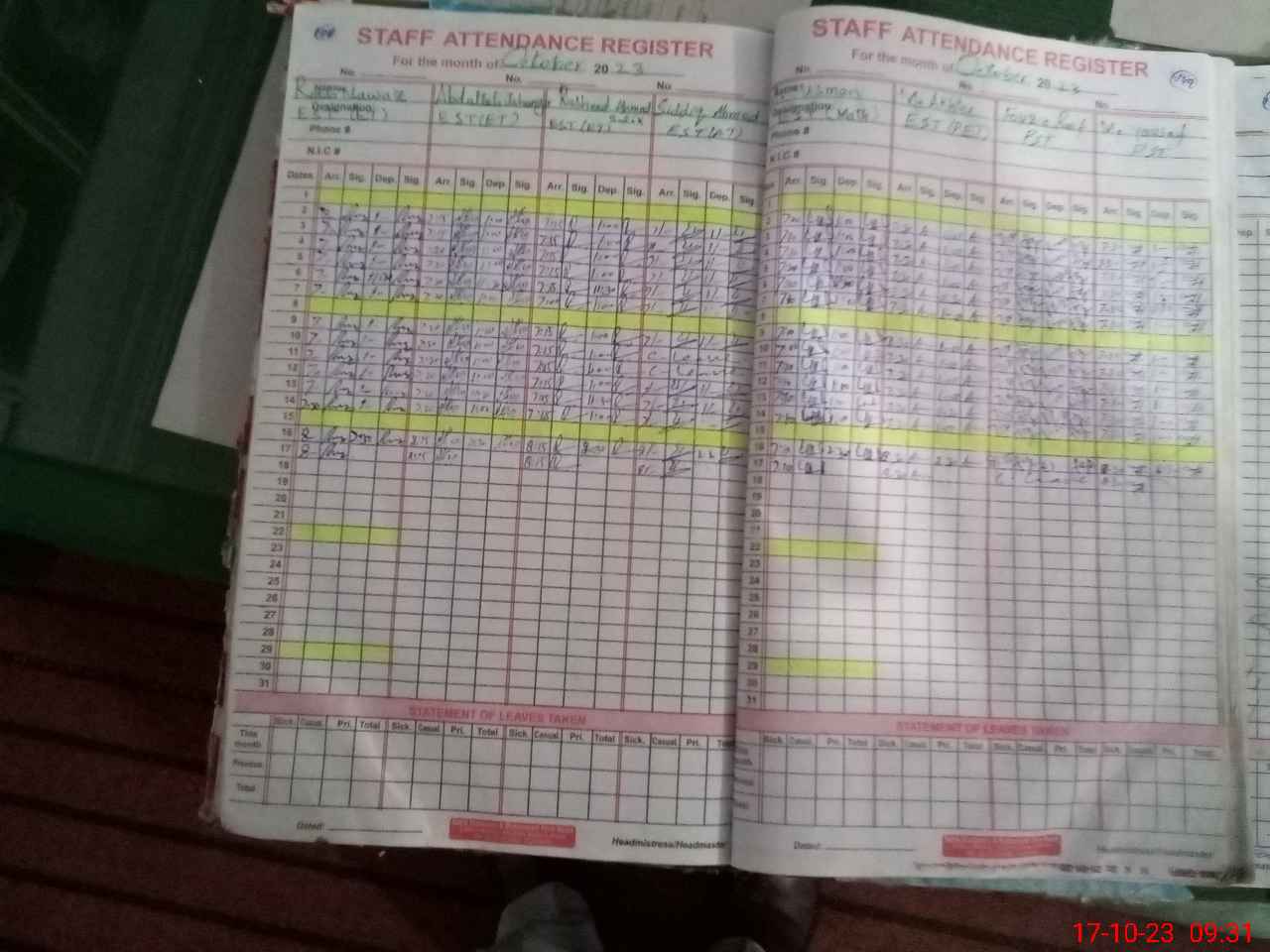 | CNIC | Full Name | Designation | R/C | Absence During Last Calender Month |