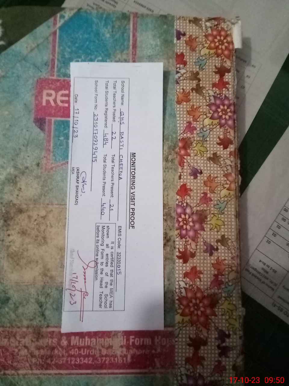 | Attendance Register | Head Teacher | MEA with School | Visit Proof |