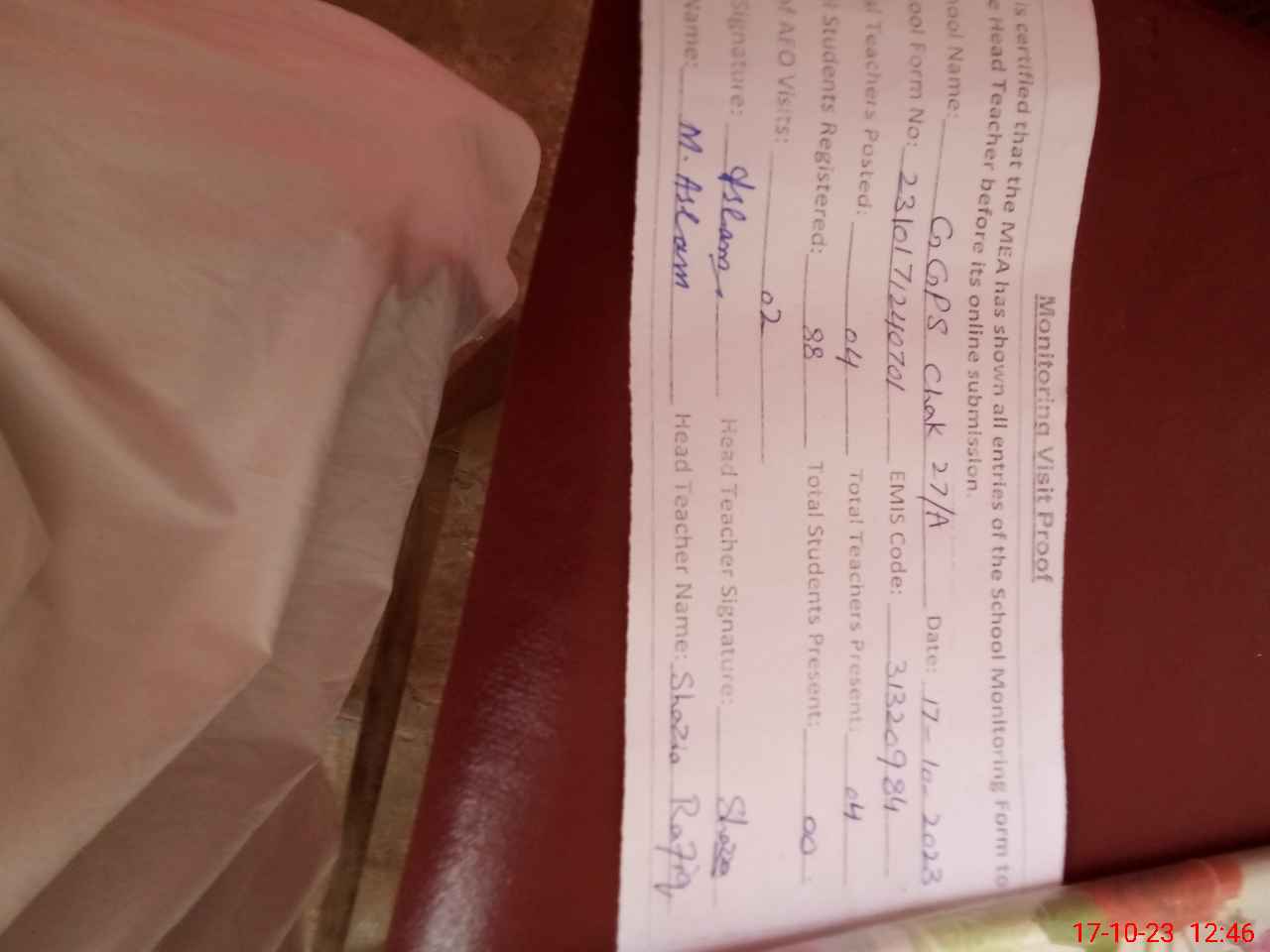 | EMIS Code: 31320984 | Name of School: GGPS CHAK 27/A | |||