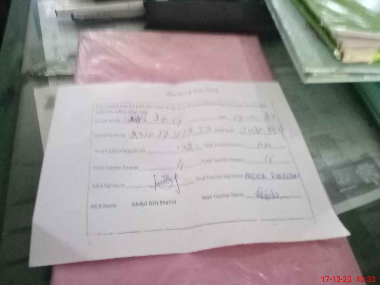 | Attendance Register | Head Teacher | MEA with School | Visit Proof |
