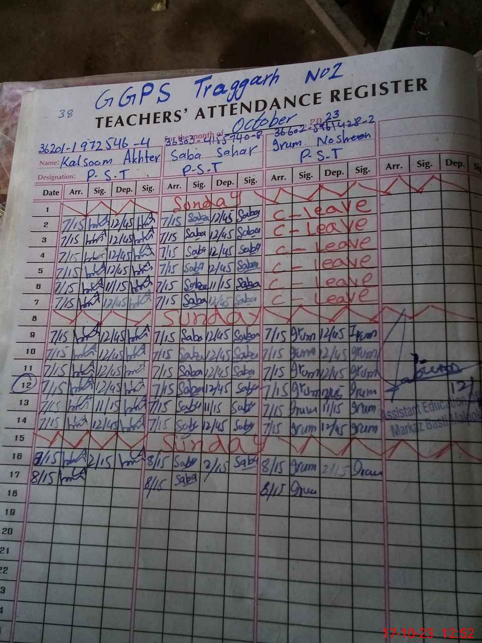 | CNIC | Full Name | Designation | R/C | Absence During Last Calender Month |