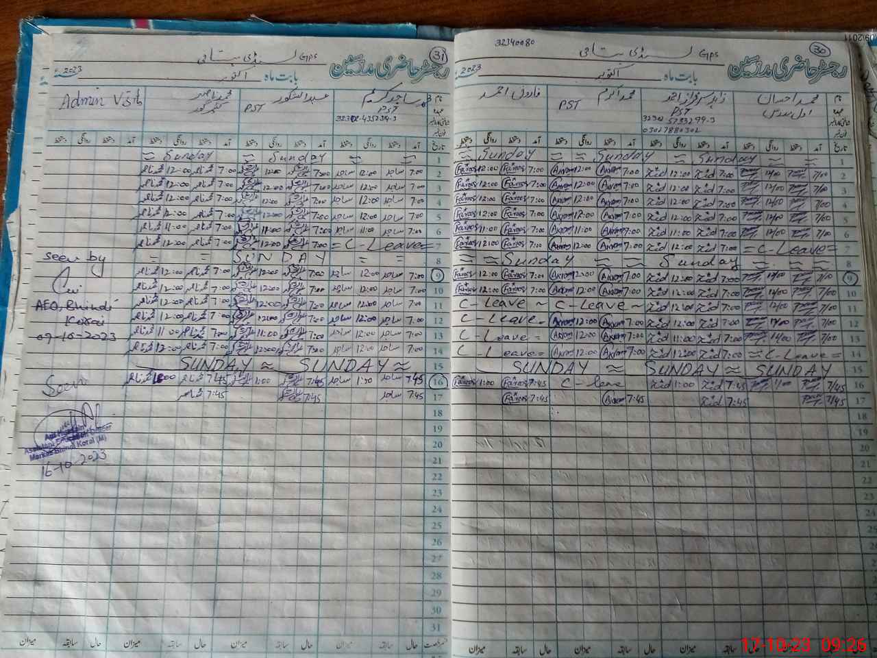 | Name: Mu**** Ih**** Designation: (School Headmaster's/Headmistress's) PST Phone/Cell Number: 03**** |