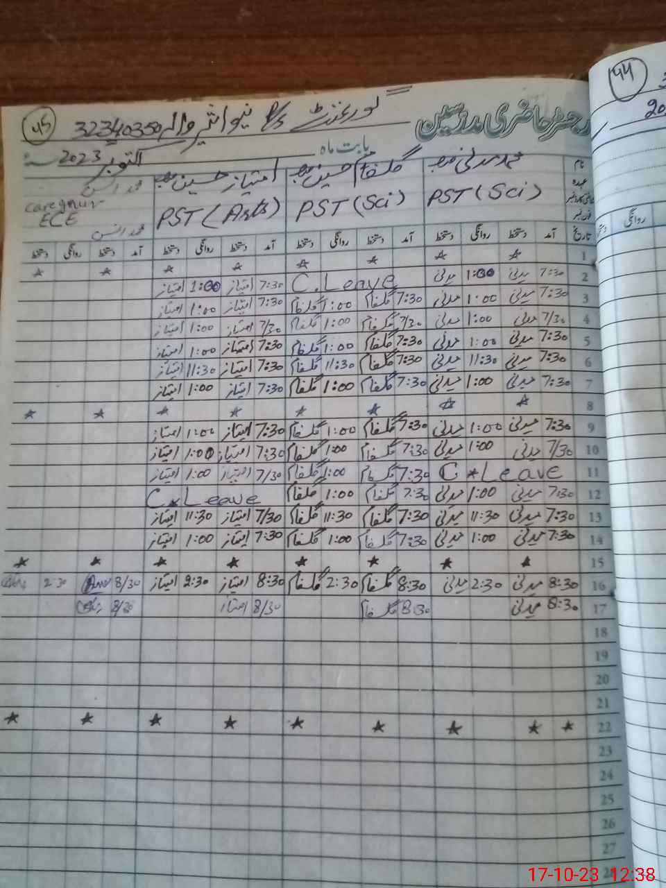 | CNIC | Full Name | Designation | R/C | Absence During Last Calender Month |