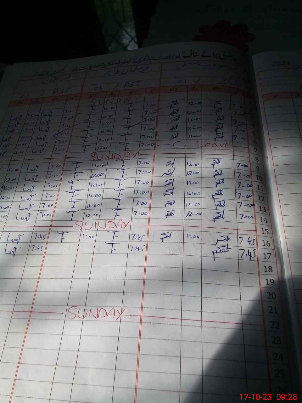 | Leave | Duty | Absent | Maternity | Medical | Ex- Pak |