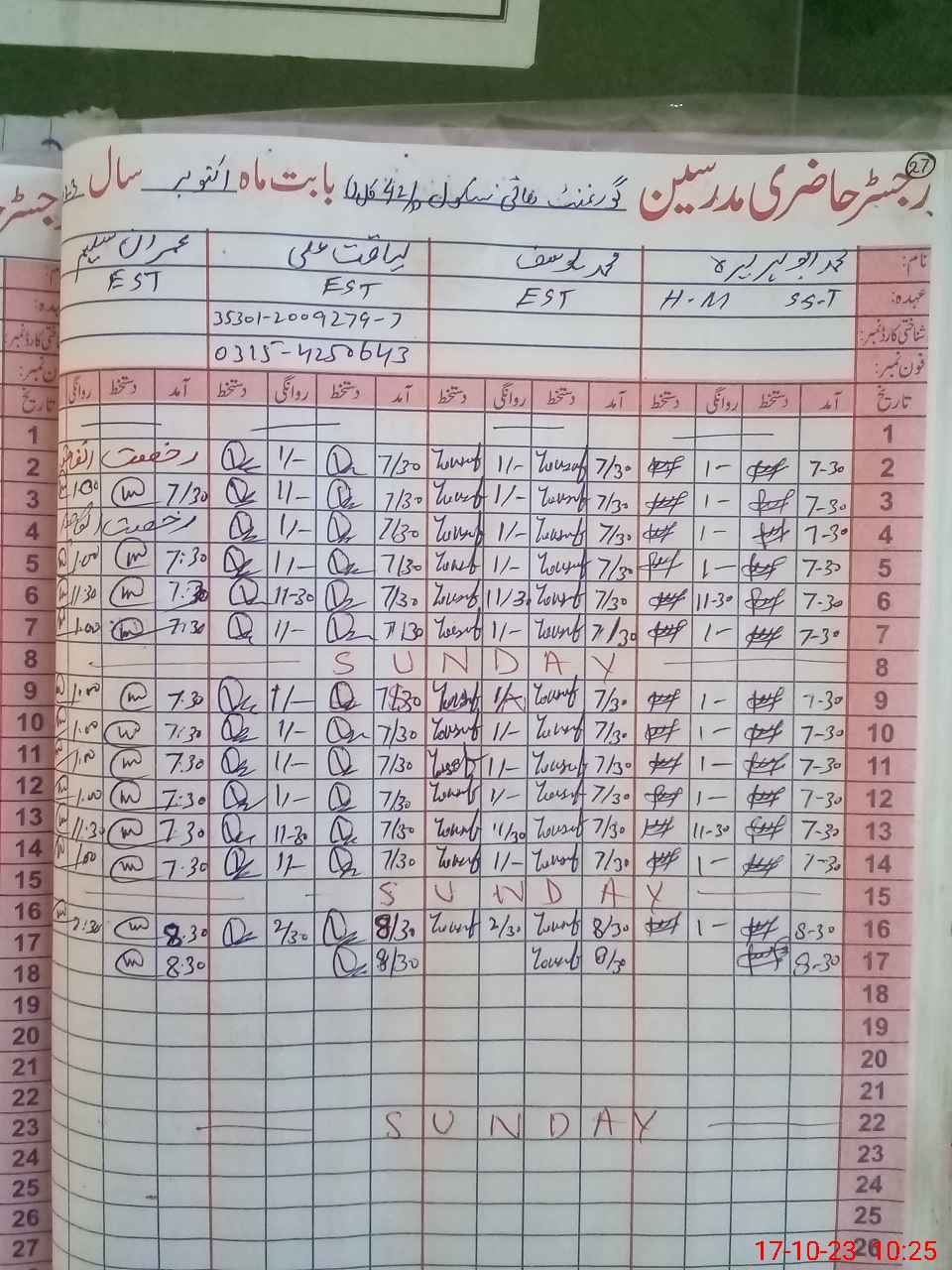 | Name: MU**** AB**** HU**** Designation: (School Headmaster's/Headmistress's) S.S.T.(Arts) Phone/Cell Number: 03**** |