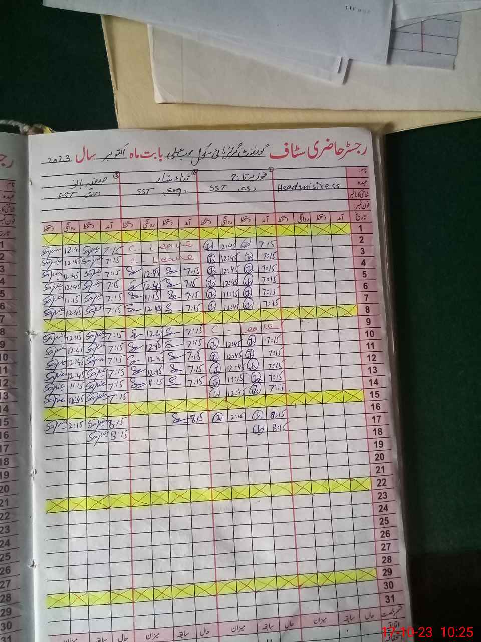 | 31**** | As**** No**** | 2 | 2 | 0 | 0 | 0 | 0 | 0 | 0 | 0 | 0 | 0 | Absent (Un-Authorized) |