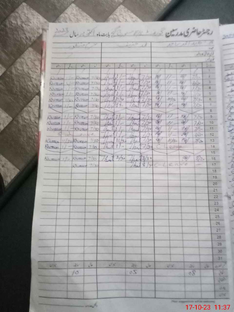 | 31**** | Ab**** Gh**** | 1 | 2 | 10 | 0 | 0 | 0 | 0 | 0 | 0 | 2 | Casual | |