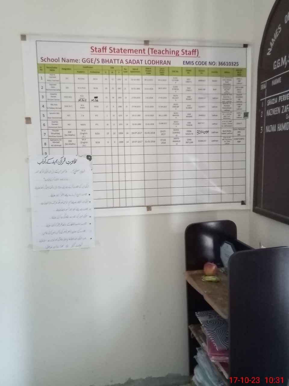 | EMIS Code: 36610325 | Name of School: GGES BHUTTA SADAAT | |||