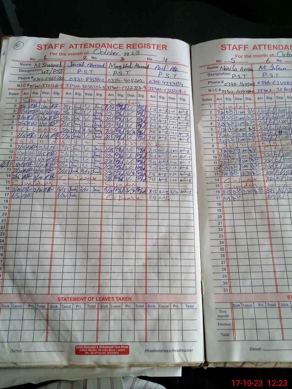 | Name: Mu**** Sh**** Designation: (School Headmaster's/Headmistress's) PST Phone/Cell Number: 03**** |