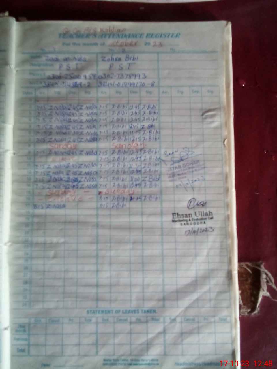 | Name: ZA**** UNNI**** Designation: (School Headmaster's/Headmistress's) PST Phone/Cell Number: 03**** |