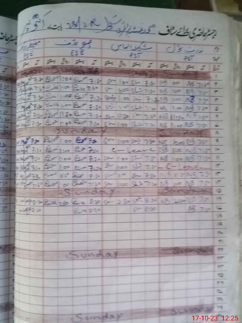 | CNIC | Full Name | Designation | R/C | Absence During Last Calender Month |