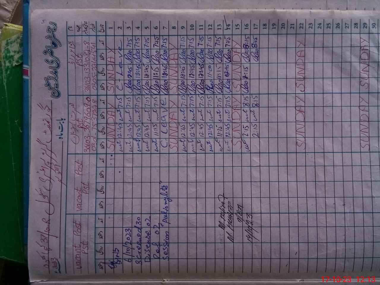 | Name: Sa**** Ra**** Designation: (School Headmaster's/Headmistress's) PST Phone/Cell Number: 03**** |