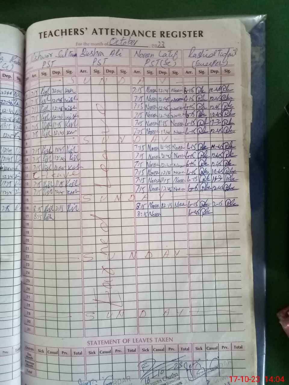 | CNIC | Full Name | Designation | R/C | Absence During Last Calender Month |