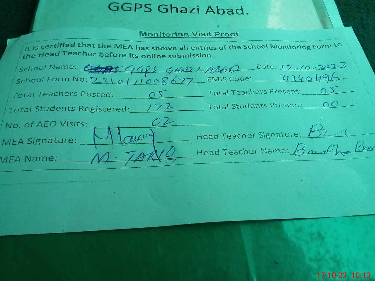 | EMIS Code: 31340496 | Name of School: GGPS GHAZI ABAD KOOCHA MEHNDI KHAN OLD | |||