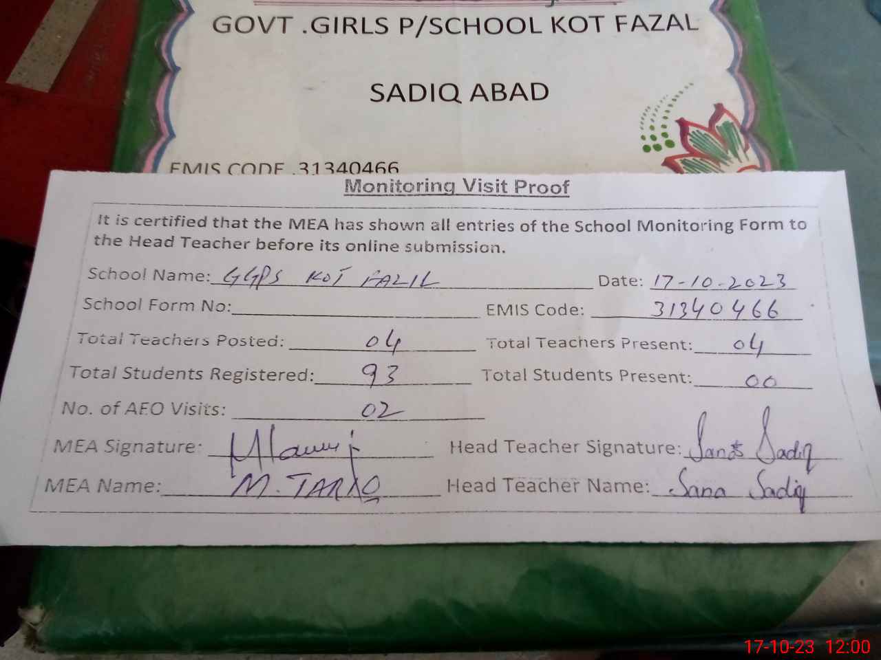 | EMIS Code: 31340466 | Name of School: GGPS KOT FAZIL | |||