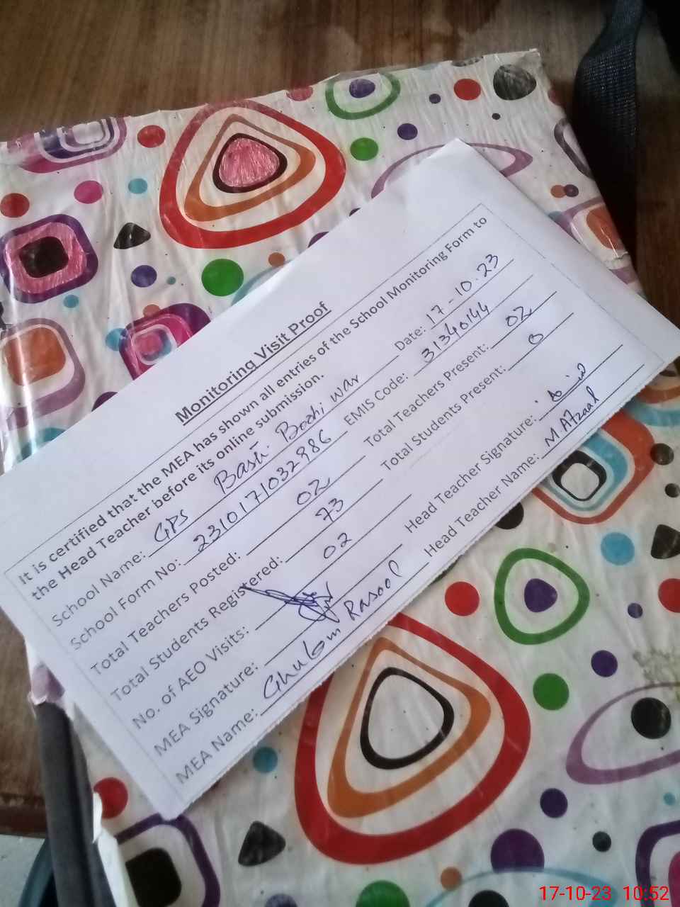 | EMIS Code: 31340144 | Name of School: GPS BASTI BOOHI WAR | |||