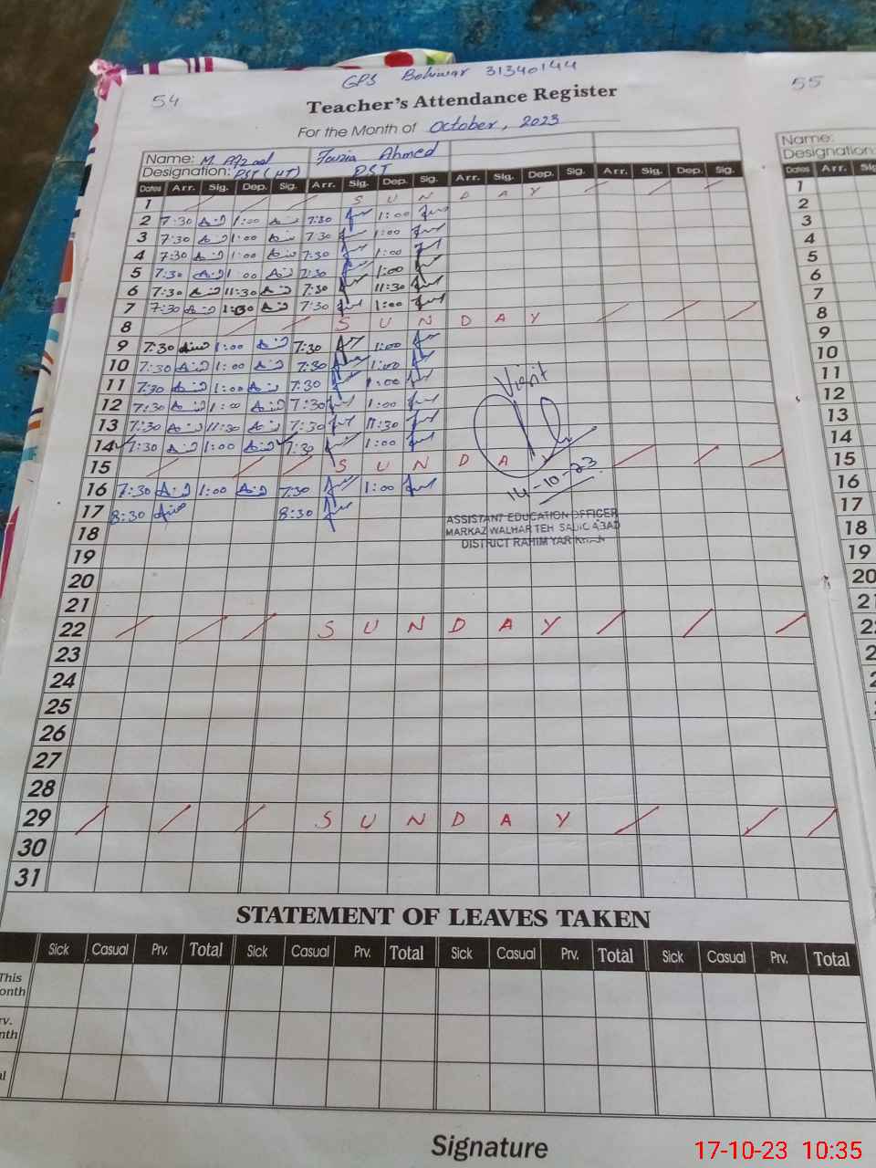 | Name: M.**** Designation: (School Headmaster's/Headmistress's) PST Phone/Cell Number: 03**** |