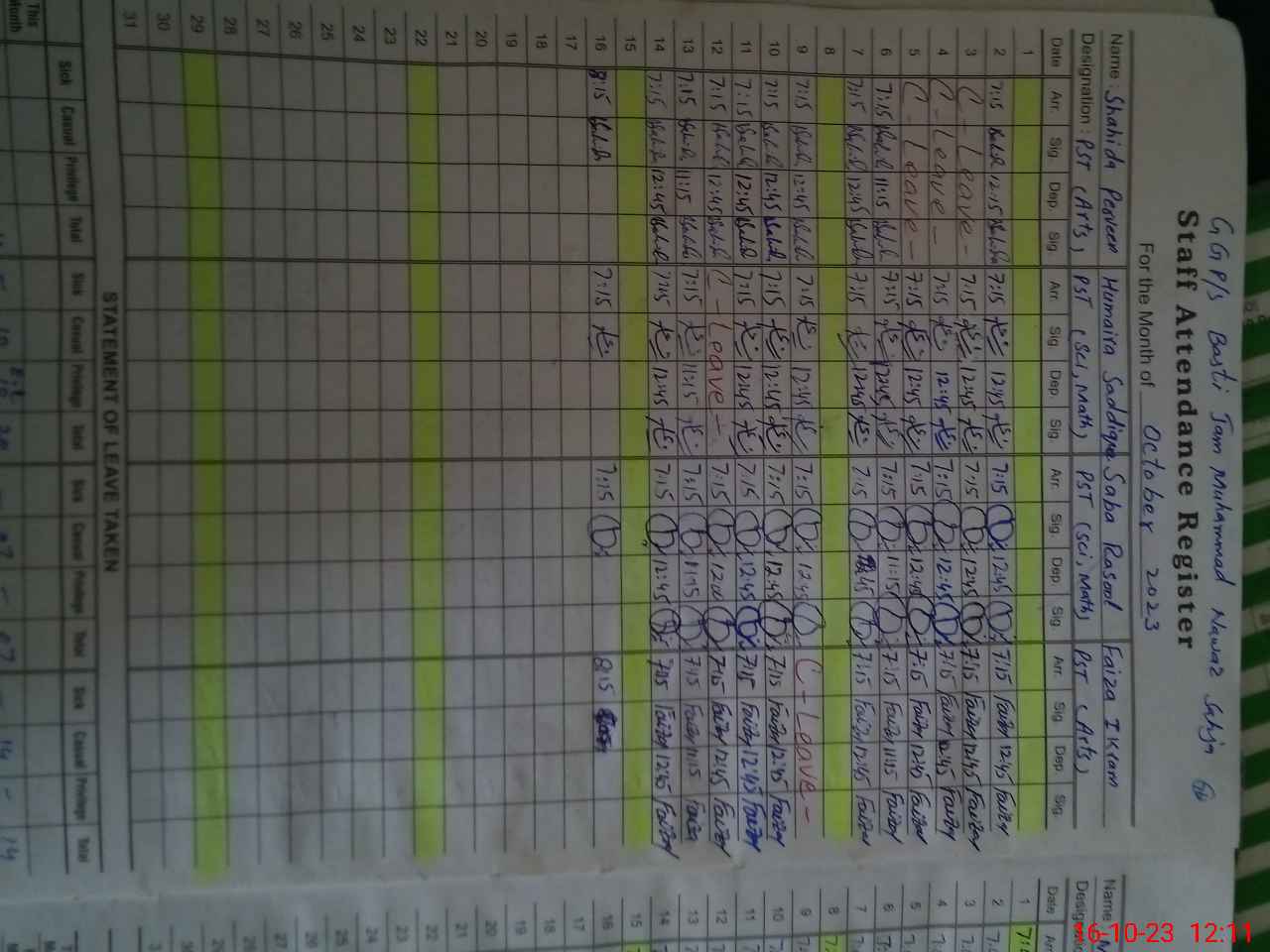 | Name: Sh**** Pe**** Designation: (School Headmaster's/Headmistress's) PST Phone/Cell Number: 03**** |