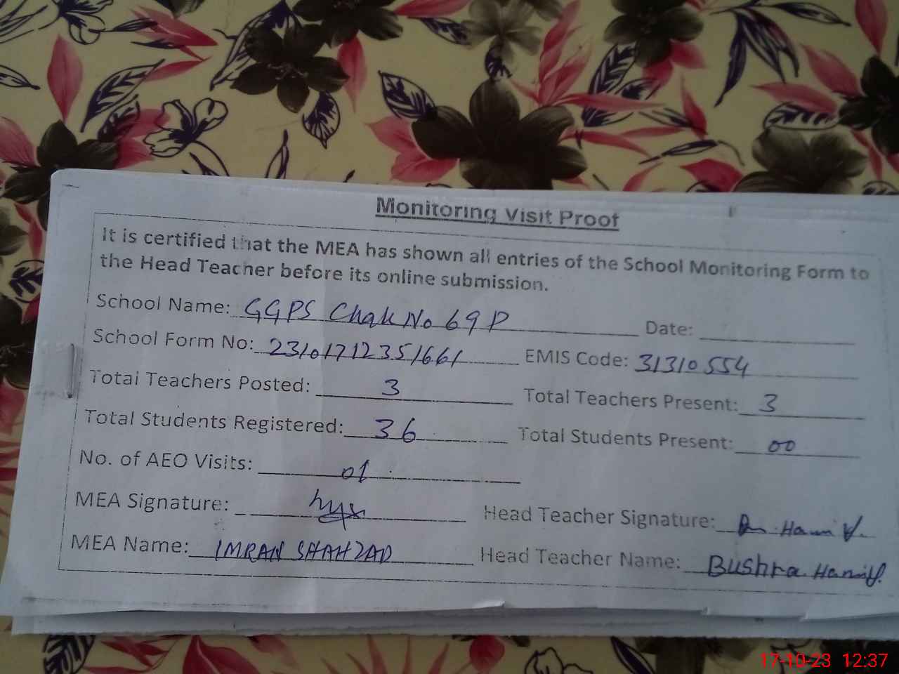 | EMIS Code: 31310554 | Name of School: GGPS CHAK NO. 69/P | |||