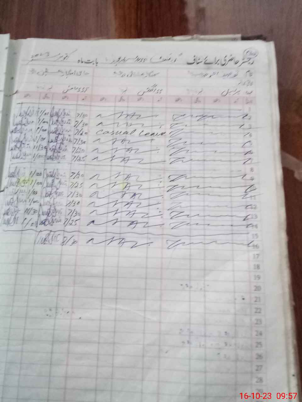 | CNIC | Full Name | Designation | R/C | Absence During Last Calender Month |