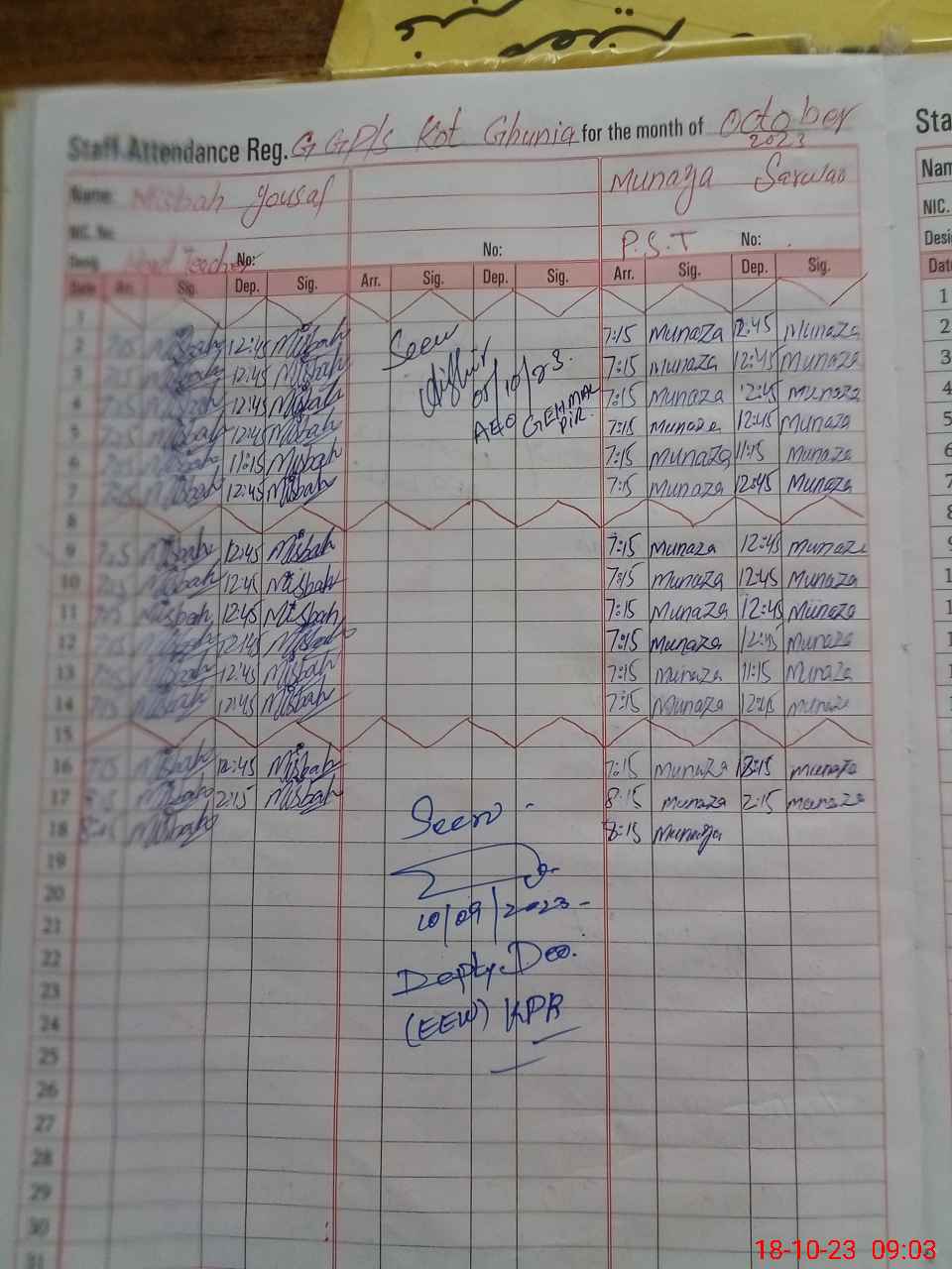 | Monitoring Date: 18-10-2023 | Start Time: 18-10-2023 08:56 AM | End Time: 18-10-2023 09:05 AM | Name of MEA: Ma**** UlHa**** | |