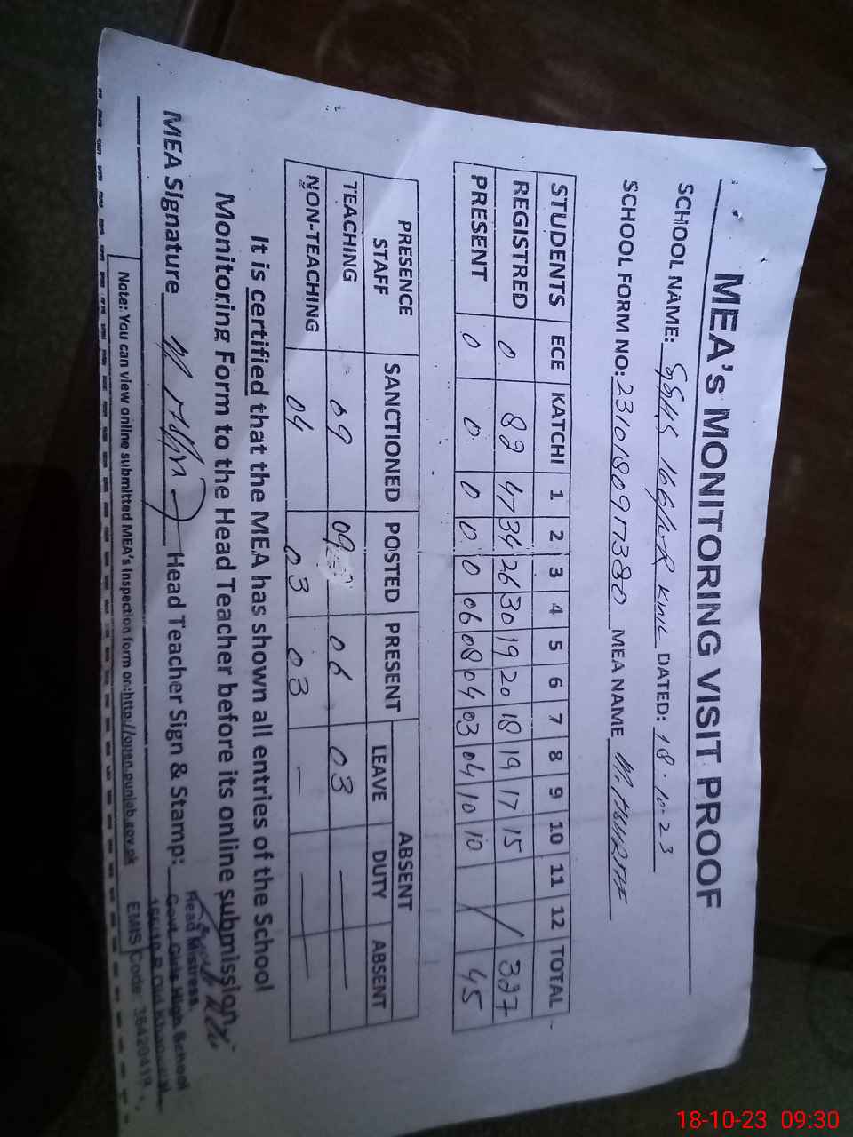 | EMIS Code: 36420419 | Name of School: GGHS 166/10-R QADEEM, KHANEWAL | |||