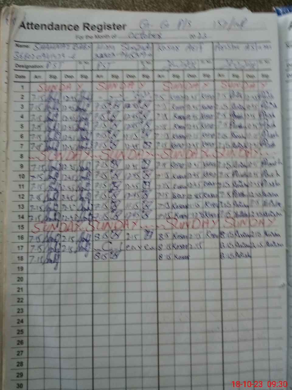 | CNIC | Full Name | Designation | R/C | Absence during last cal. month |