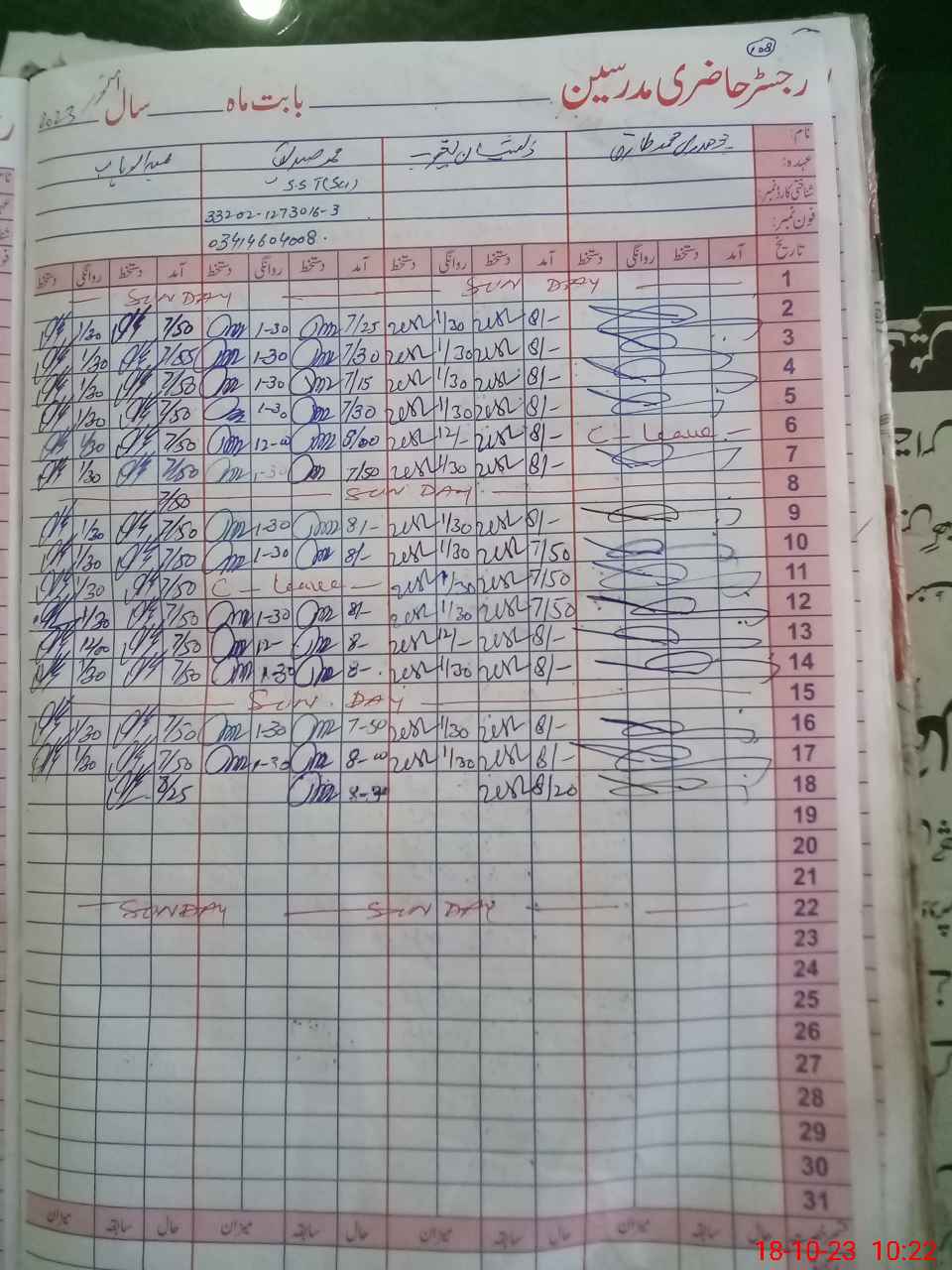 | CNIC | Full Name | Designation | R/C | Absence During Last Calender Month |