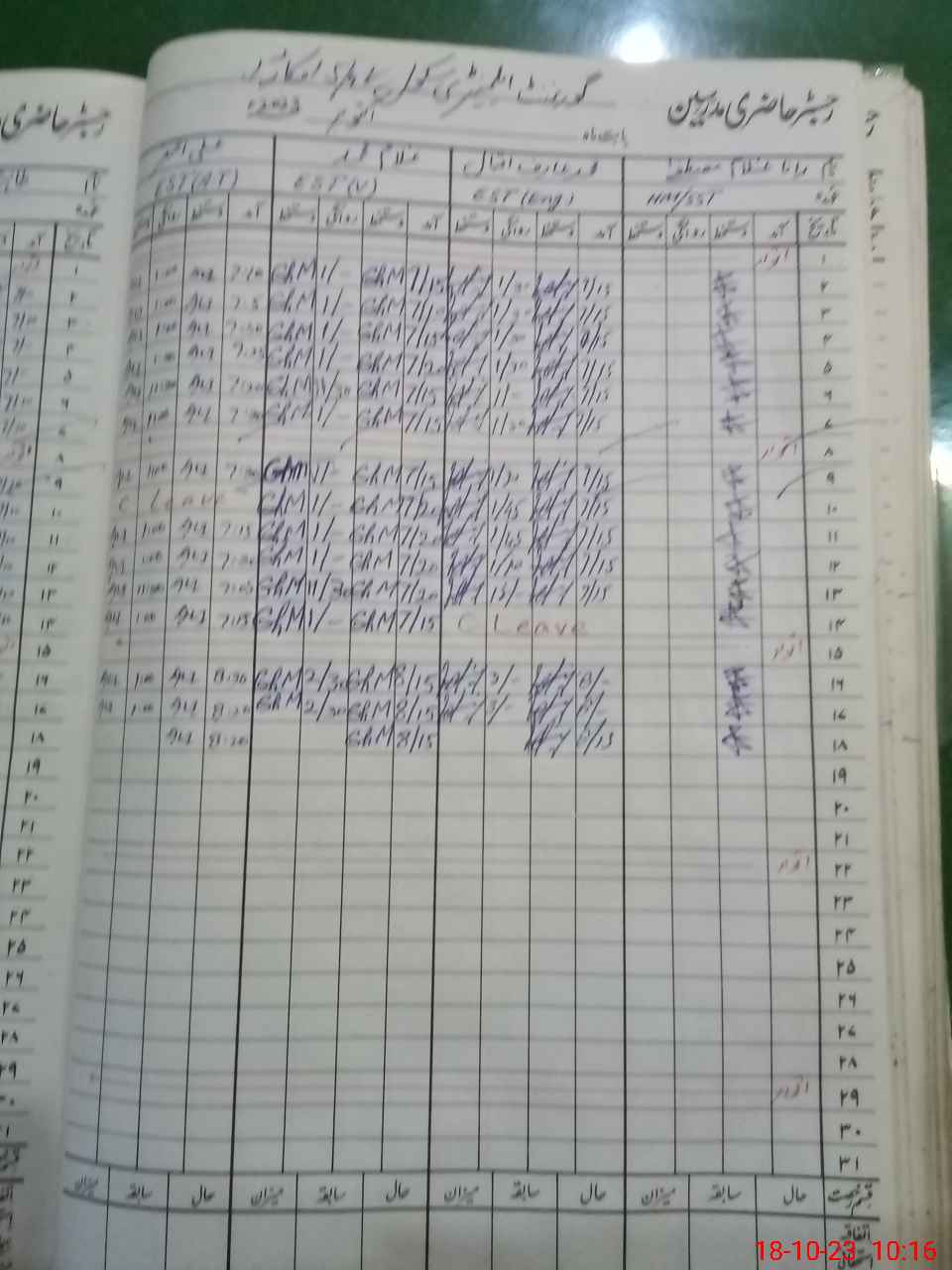 | CNIC | Full Name | Designation | R/C | Absence During Last Calender Month |