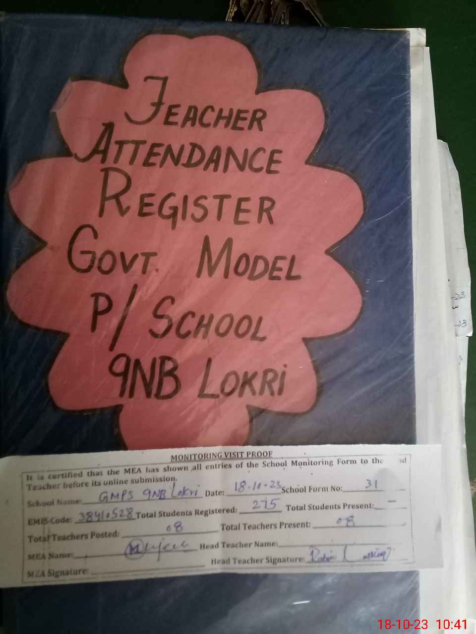 | EMIS Code: 38410528 | Name of School: GMPS CHAK NO.9 NB LOKRI | |||